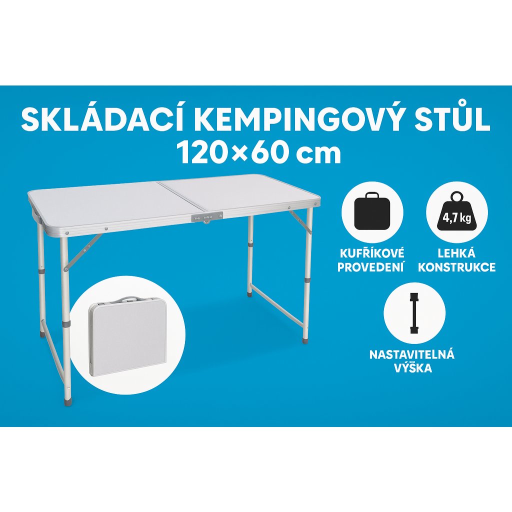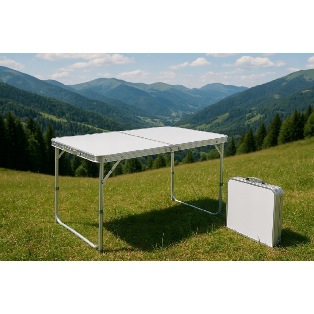 Skládací kempingový stůl 120×60 cm – lehký hliníkový stolek v kufříku
