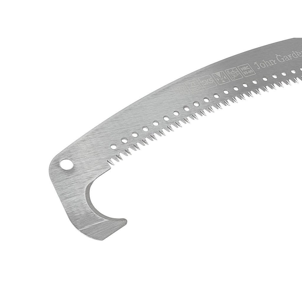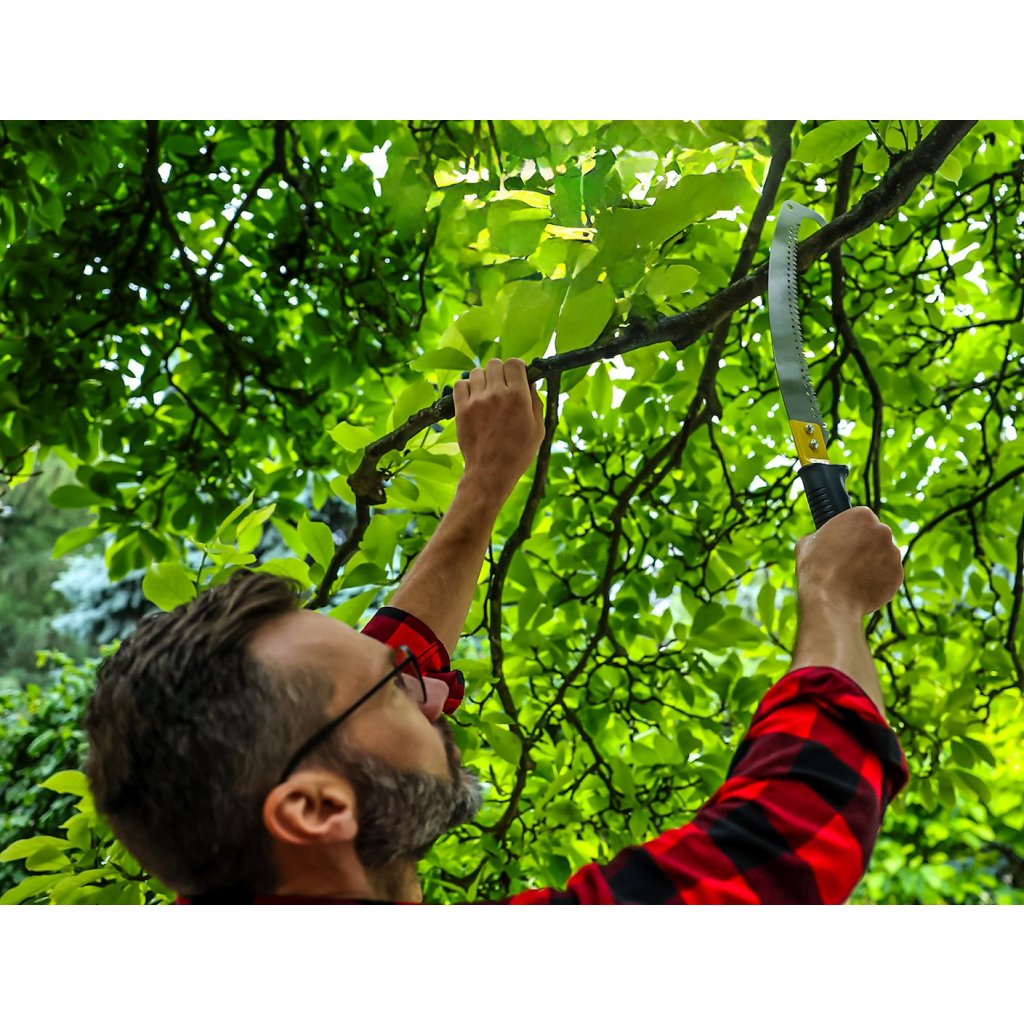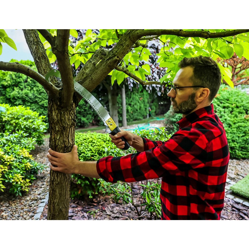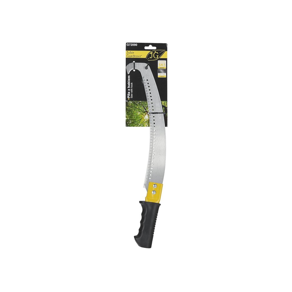 Zahradní pila s hákem, vytvořená pro přesné a bezpečné řezání dřeva, větví a keřů. Je vybavena ergonomickou, profilovanou rukojetí z plastu, která zaručuje jistý úchop a vysoký komfort práce i při delším používání. Zakřivené ostří vyrobené z oceli SK5 si perfektně poradí jak se suchým, tak i čerstvým dřevem.