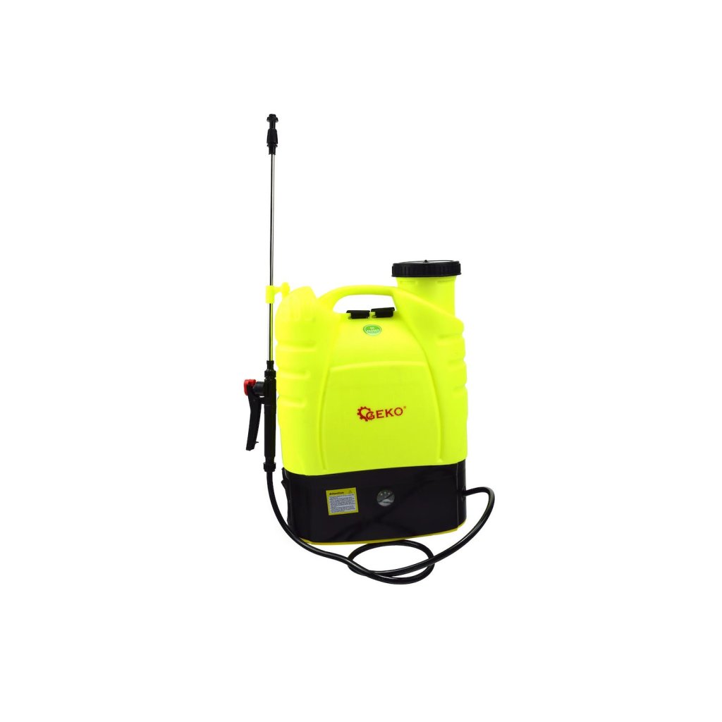 Akumulátorový postřikovač o objemu 16 l.