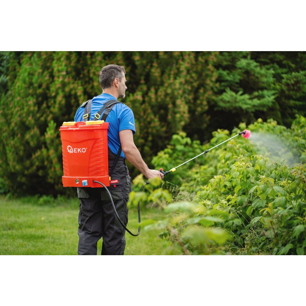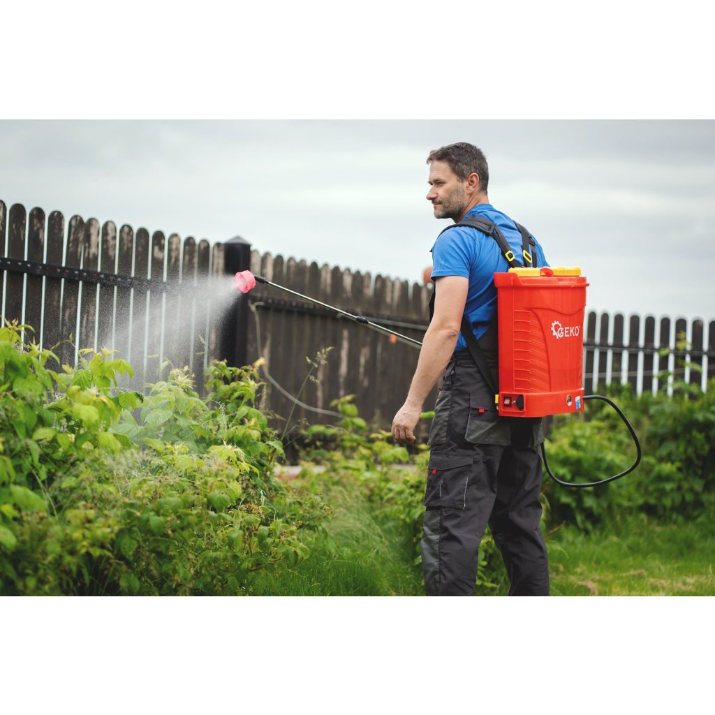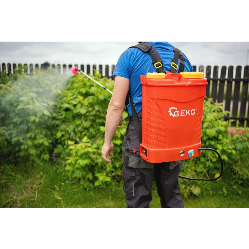 Elektrický postřikovač renomované společnosti GEKO je snadno ovladatelné zařízení, které je vynikající alternativou k ručním nebo benzínovým postřikovačům. Baterie, kterou je vybaven, umožňuje dlouhé hodiny práce.