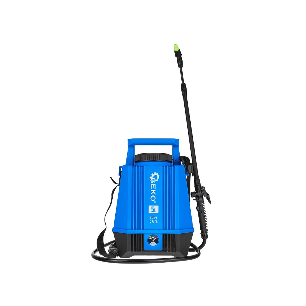 Nádrž o objemu 5 litrů umožňuje delší práci bez nutnosti doplňování kapaliny a ergonomický tvar a ramenní popruh zaručují pohodlí i při dlouhodobém používání. Nářadí je vybaveno otočným knoflíkem pro regulaci otáček, který umožňuje přesné přizpůsobení tlaku typu práce – od jemného postřikování po intenzivní stříkání.