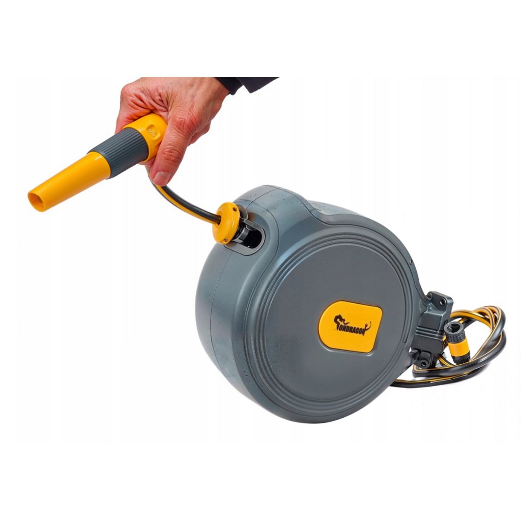Automatický naviják zahradní hadice je perfektním řešením pro lidi, kteří oceňují pohodlí. Nyní bude zalévání vašich rostlin velmi jednoduché a velmi příjemné, bez rizika zakopnutí. Díky otočné rukojeti je možné buben upevnit na stěnu a otáčet.