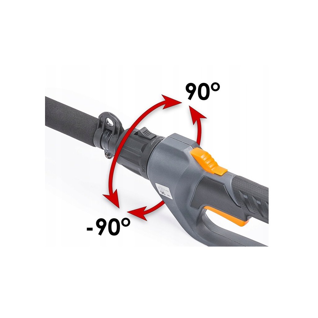 Pomocí kroužku je možné změnit polohu nůžkového hřídele z -90 ° na 90 °, což umožňuje snadný přístup na těžké místa. Délka nůžek je 220 cm. Díky dělenému komponentu, je možné složit tyč na polovinu, což výrazně usnadní transport.