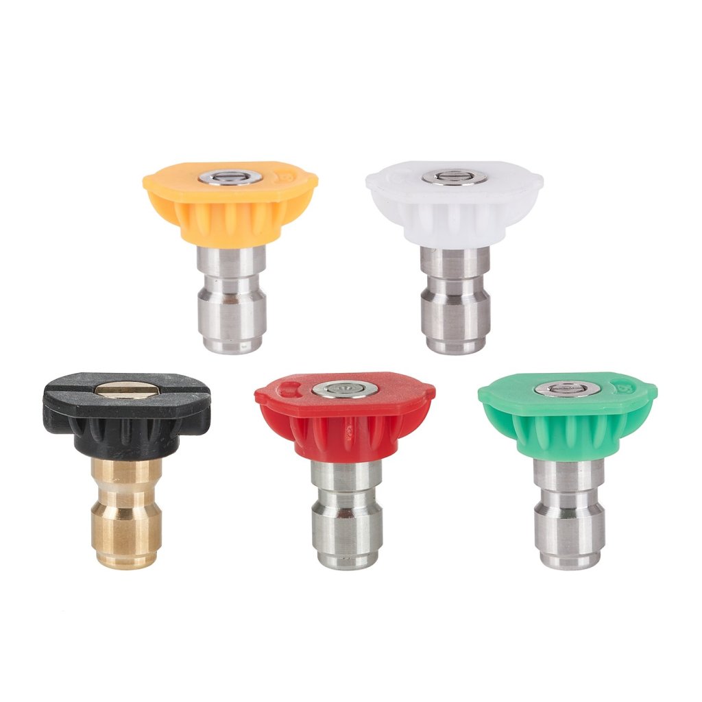 - Bílá tryska (40°):;Speciálně vyvinuta pro čištění skel a oken, zajišťuje rovnoměrný a účinný proud bez rizika poškození citlivých povrchů.