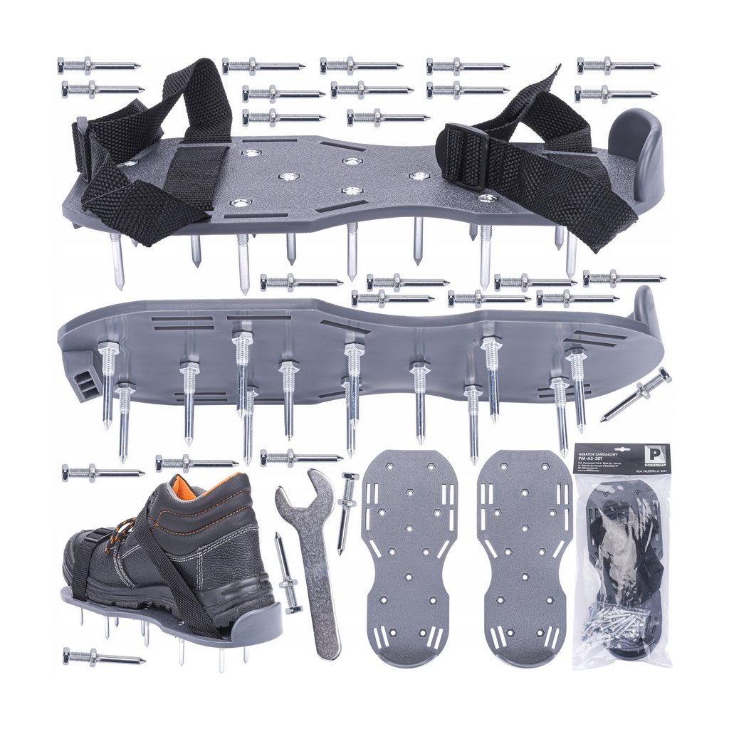 ✅ KOMPLETNÍ VÝBAVA V balení najdete 2 sandály, 26 kovových hrotů a 4 upevňovací pásky pro stabilní uchycení. Kompletní sada, která zajistí rychlou a účinnou aeraci trávníku.