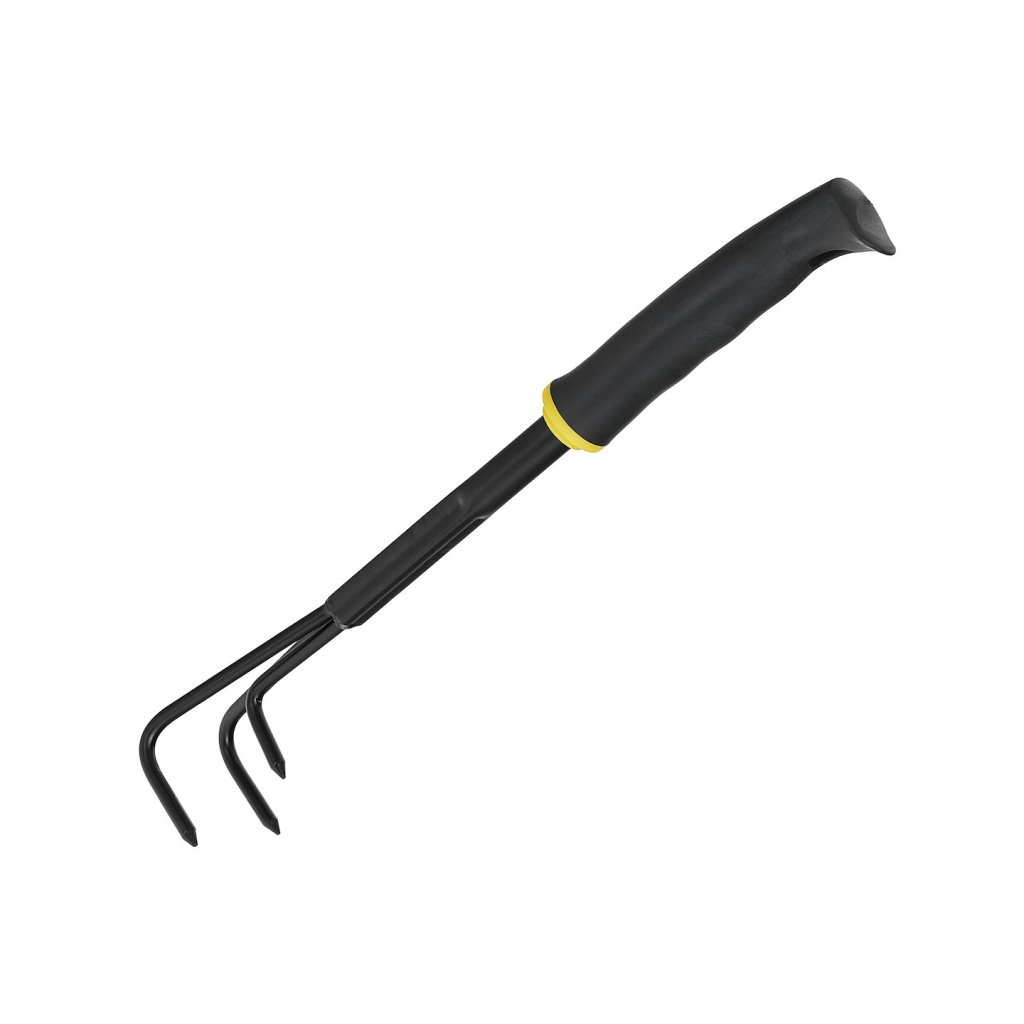 Třízubé zahradní hrábě se skvěle hodí k kyprění, provzdušňování, odstraňování plevele a přípravě půdy k výsadbě. Díky rozestupu zubů (5,5 cm) si nástroj poradí jak s lehkou, tak i s trochu hutnější půdou.