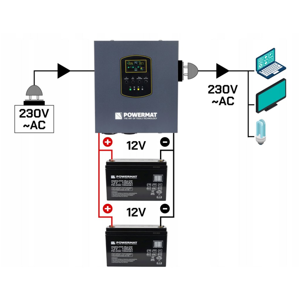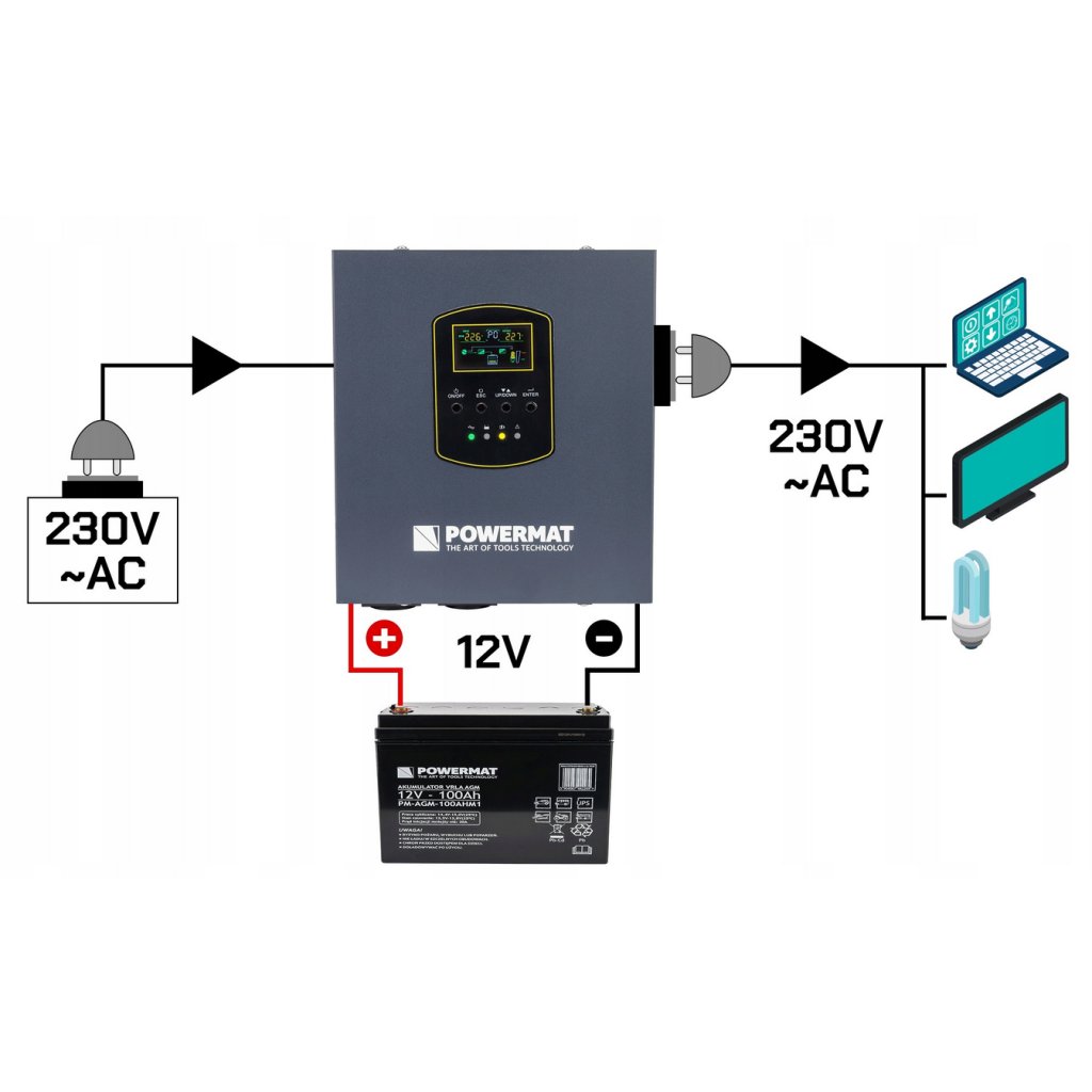 Záložní zdroj UPS 500 VA / 300 W – Powermat PM1220 (LCD, čistá sinusovka)